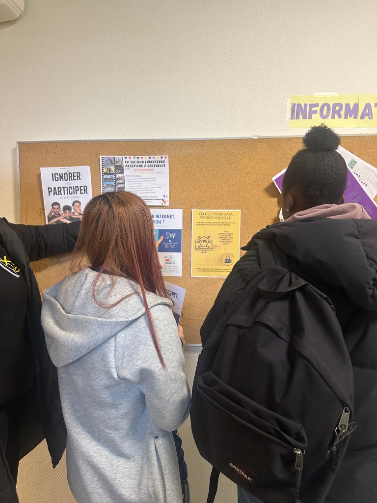 Pour clore ce projet, les élèves ont conçu des posters de sensibilisation destinés à leurs camarades du lycée. Ces affiches, exposées dans différents espaces de l’établissement, mettent en lumière les dangers d’Internet et des réseaux sociaux : harcèlement en ligne, usurpation d’identité, exposition excessive des données personnelles, etc. L’objectif ? Encourager une prise de conscience collective et responsabiliser chaque utilisateur.